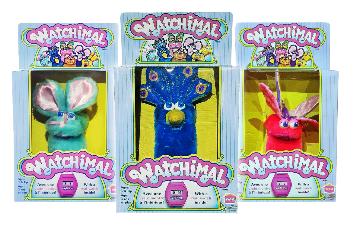 Released in 1985 by Hasbro, Watchimals were wearable toy watches in the form of soft animal characters that concealed a digital timepiece.