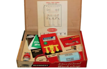 An early entry in Remco’s line of educational science sets, the Electrocraft Beginner’s Electrical Workshop (No. 405) introduced children to the basics of circuitry through a variety of simple, self-contained experiments.